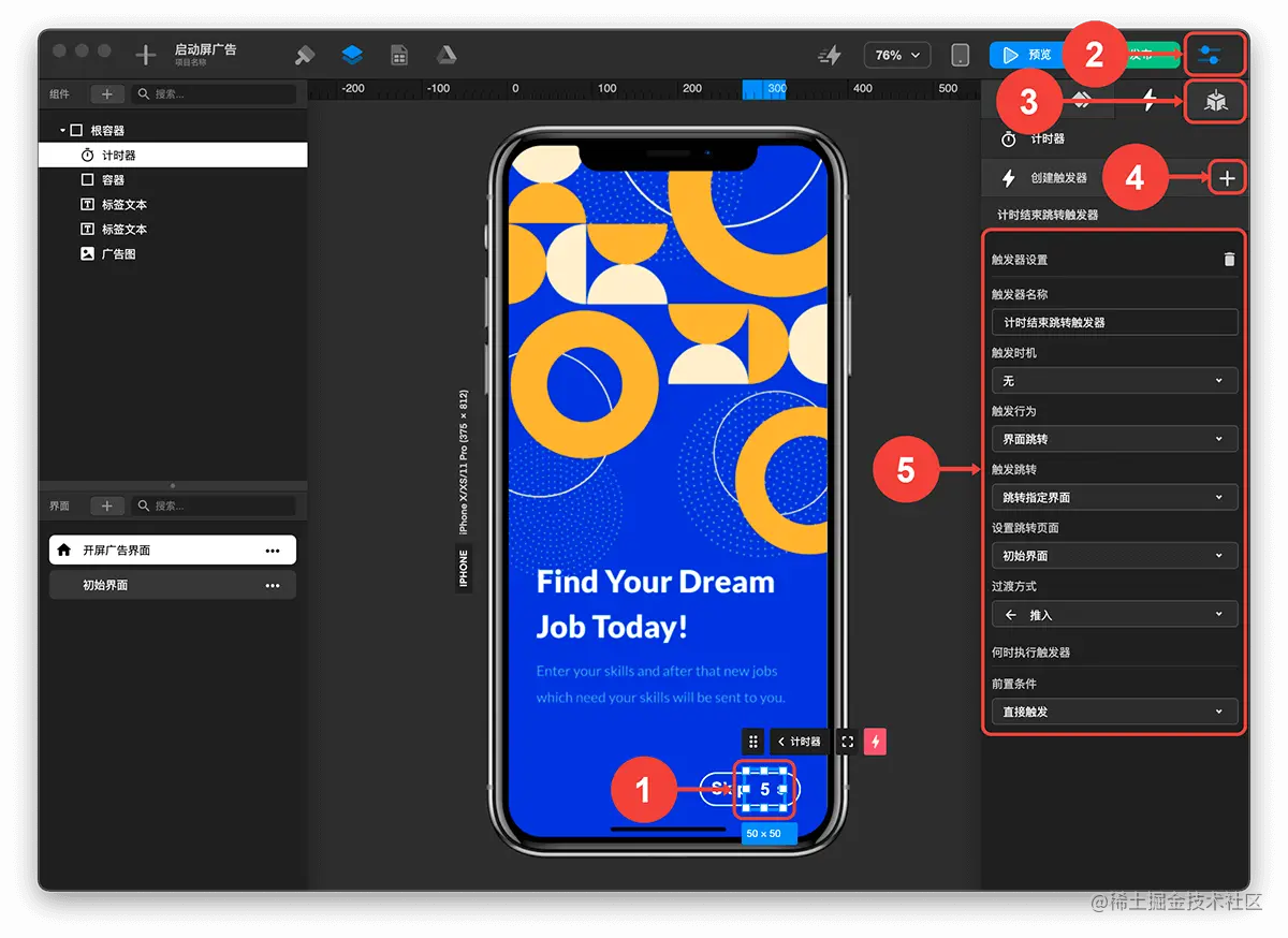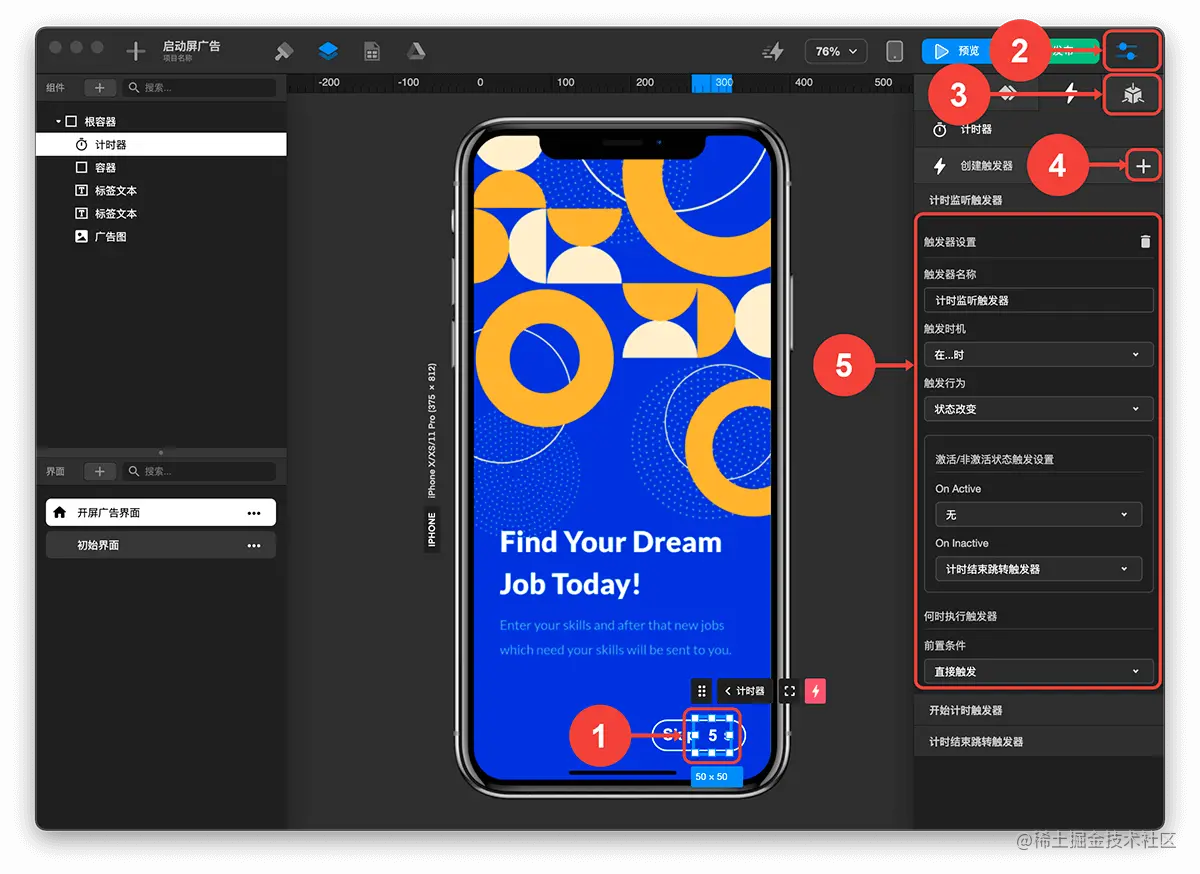 创建计时结束跳转触发器: