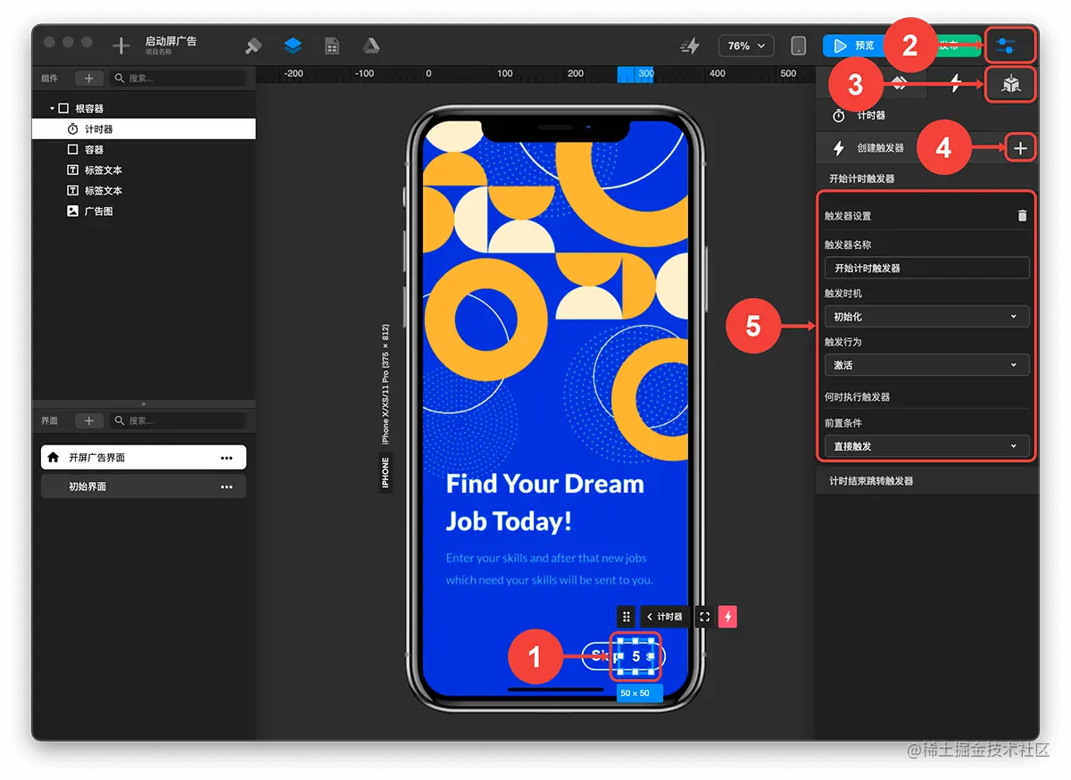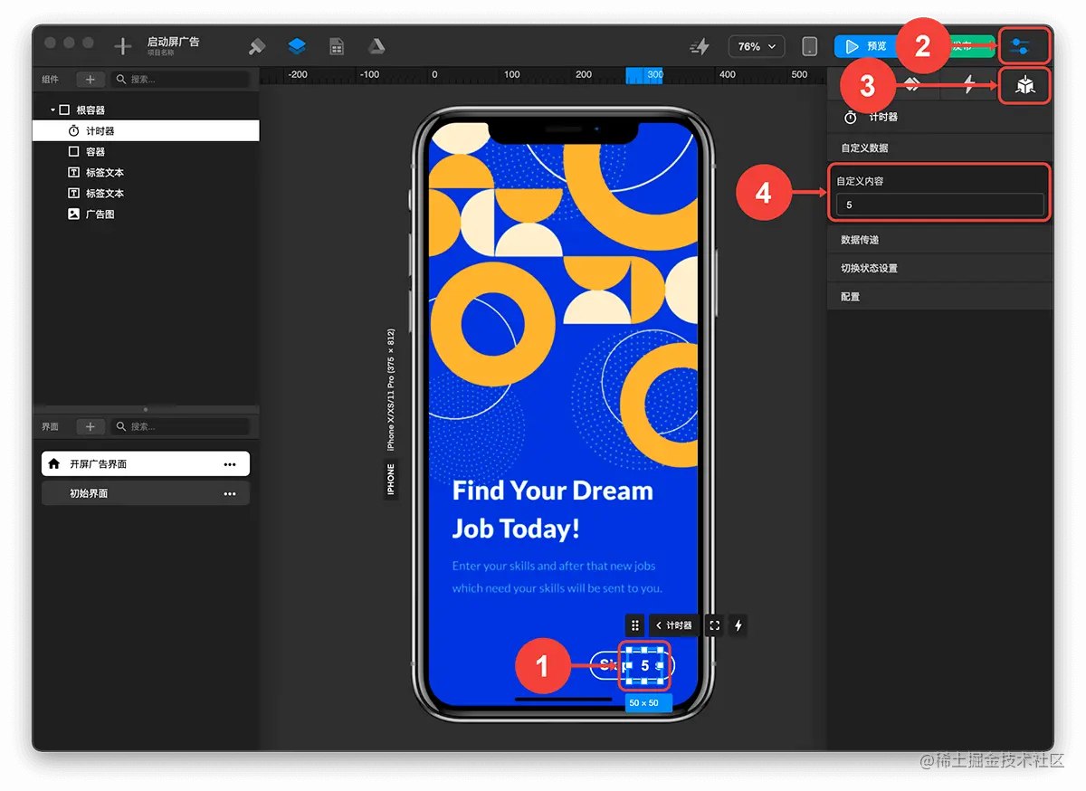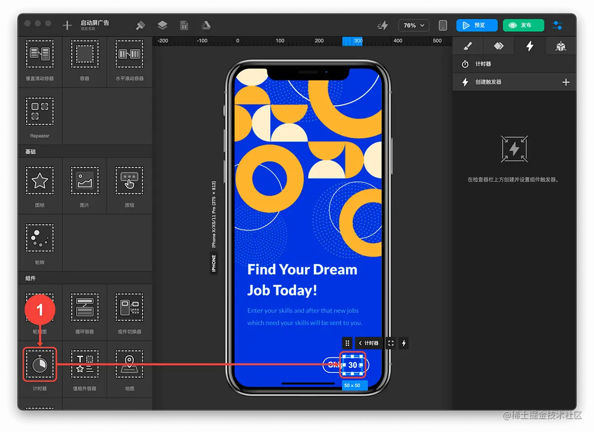 - 选中 计时器 组件
