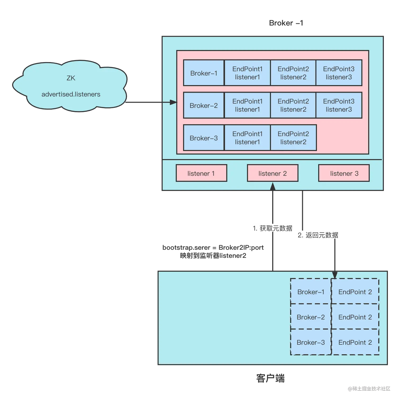 上图客户端部分获取到的 Broker 列表 EndPoint 应该是什么呢?