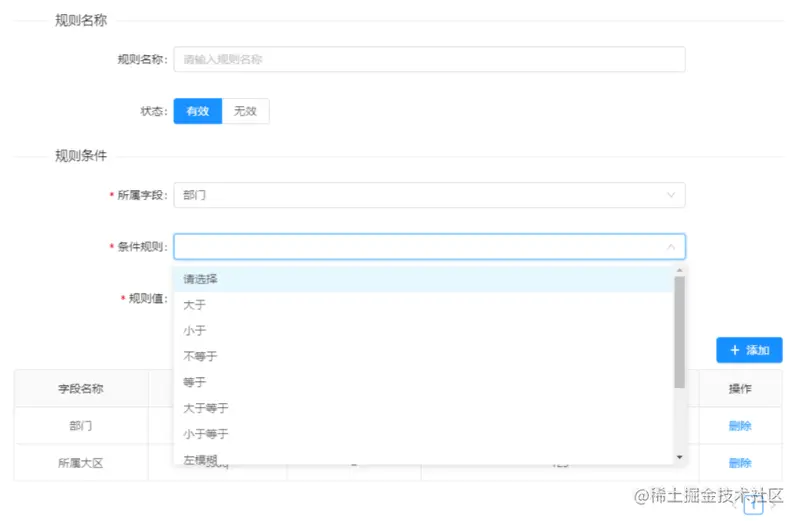 规则字段配置说明: