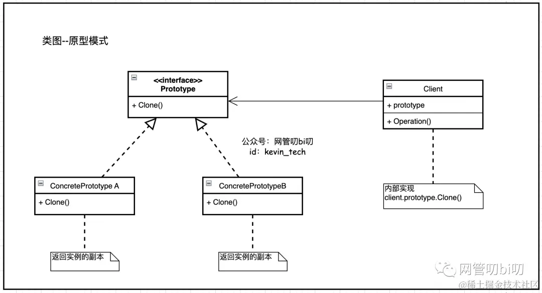 原型对象按照惯例,会暴露出一个 Clone 方法,给外部调用者一个机会来从自己这里“零成本”的克隆出一个新对象。
