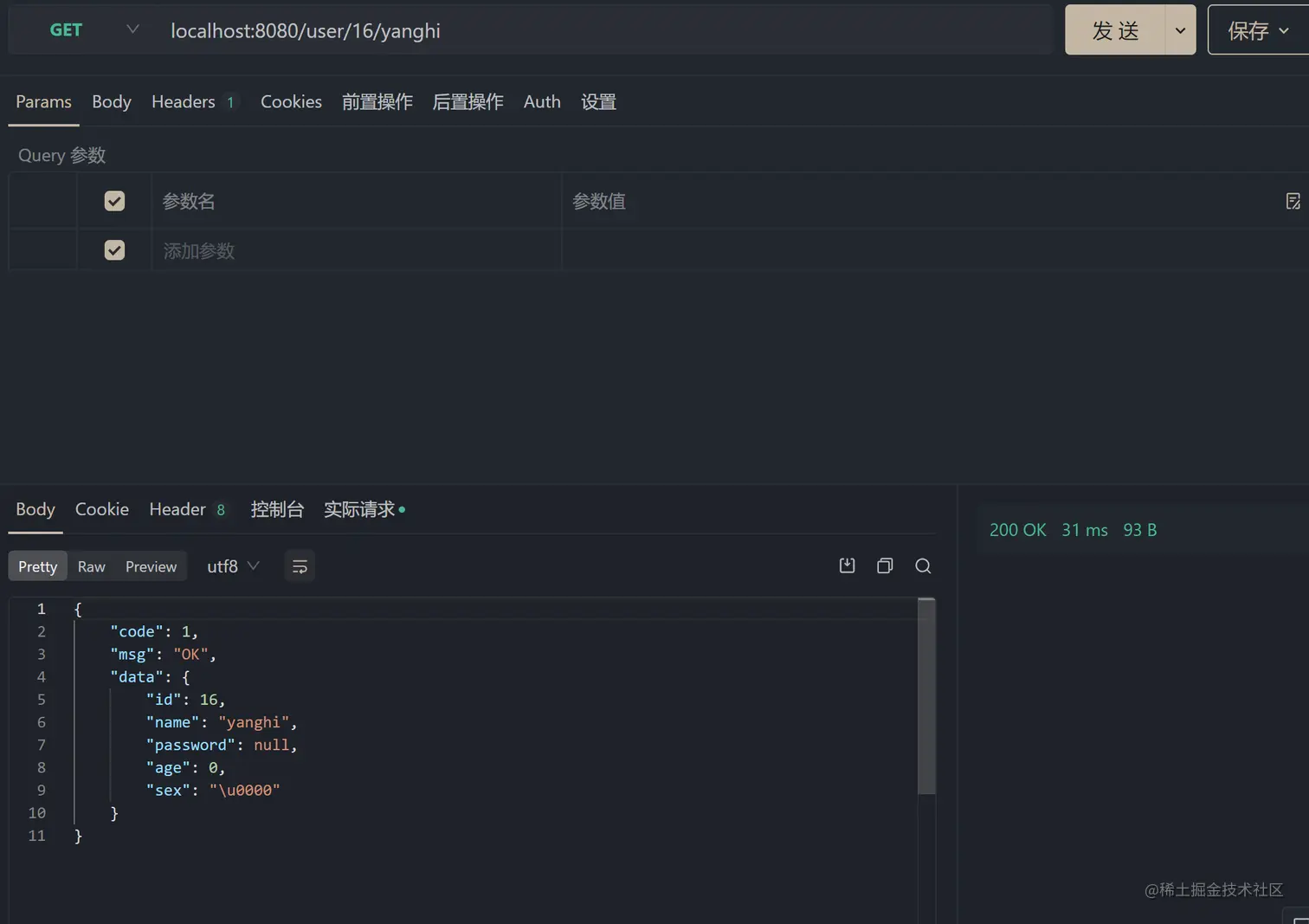 将我们登录后的 token 放入到请求头中时:就返回了正确的结果