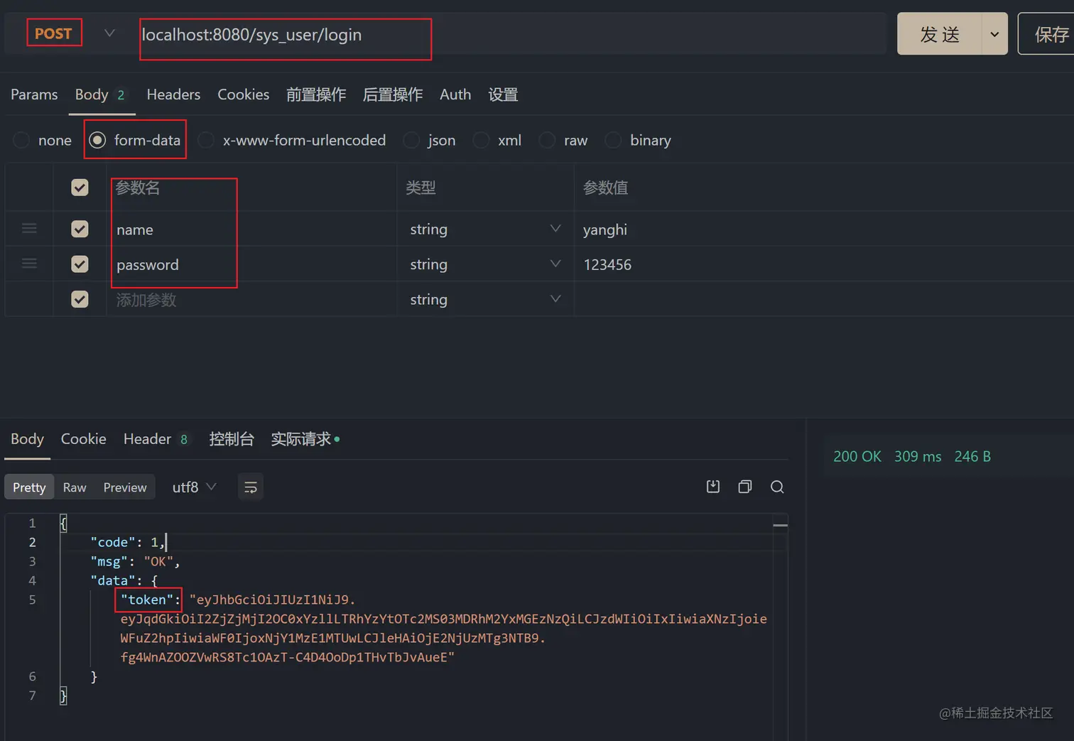 - 测试登录接口,发送
