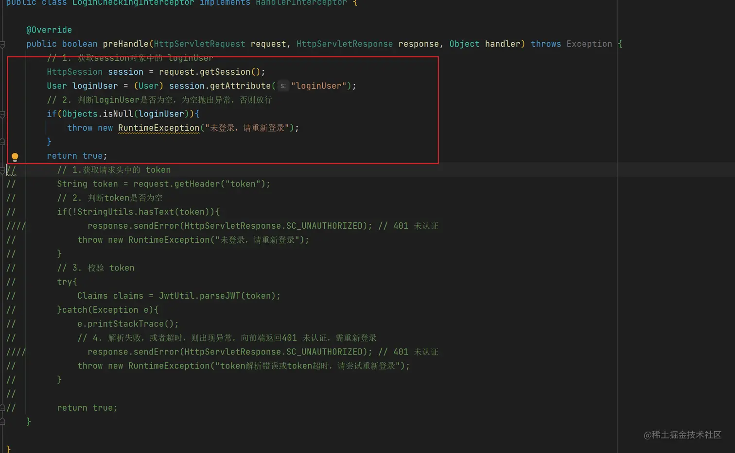 // 2. 判断loginUser是否为空,为空抛出异常,否则放行