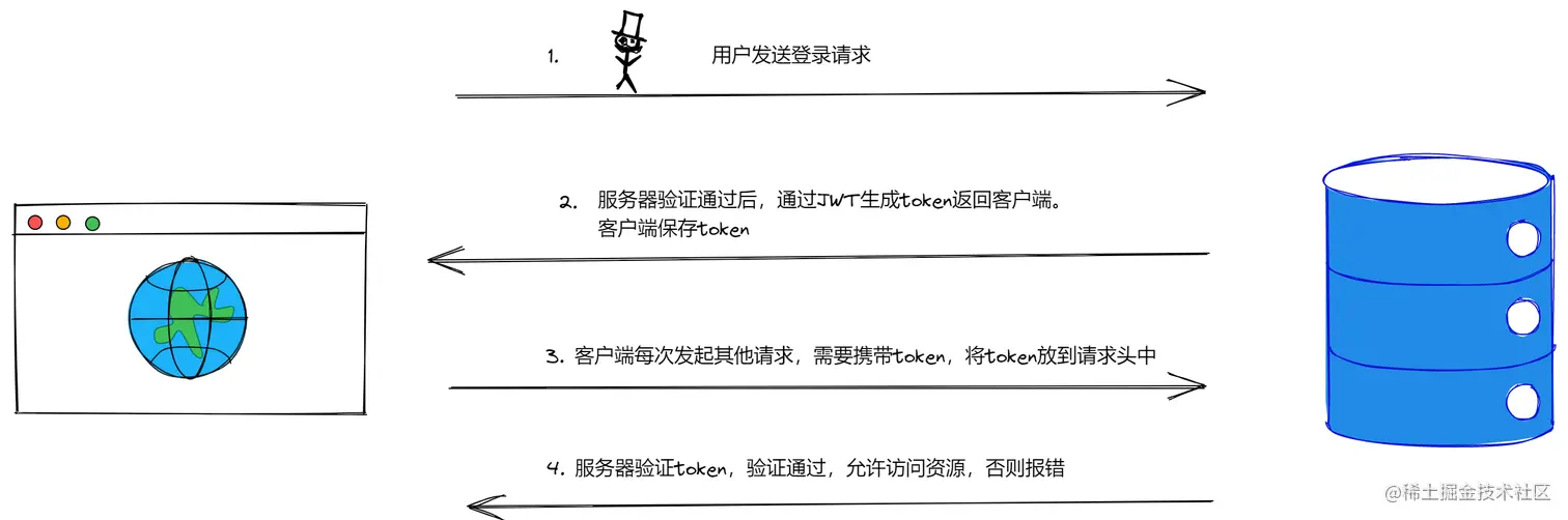 使用 token 作为前后端分离项目中浏览器与服务器的凭证,使服务器资源的安全得到了保证。以上的操作与服务端渲染项目中,通过 session 校验用户是否登录,然后允许用户是否可以访问其他接口的思路是一致的。