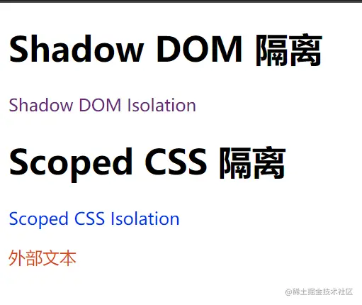 会发现外部文本依然是红色,不会受微应用的样式影响。