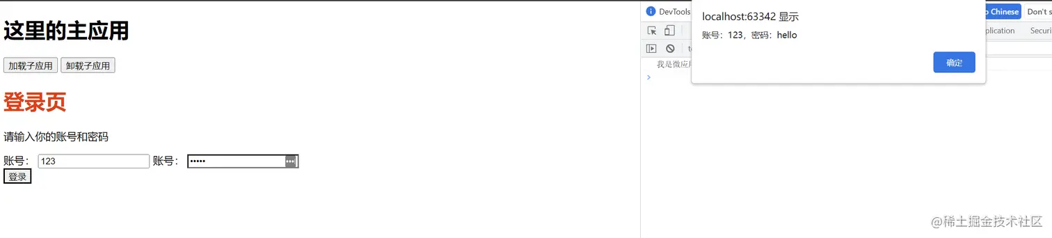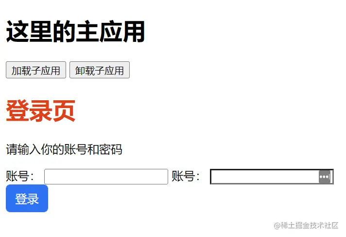 实现完后,我们就可以通过点击主应用的按钮来加载和卸载微应用了,最终效果如下图示所: