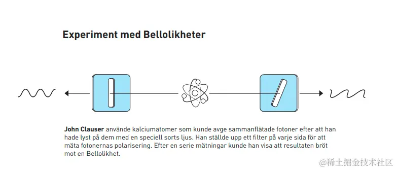 美国科学家约翰·克劳泽(John Clauser)延续了贝尔的想法,设计了一项实验对贝尔不等式进行验证,Clauser使用钙原子,在他借助一种特殊的光照亮粒子后,钙原子可以发射纠缠光子。他在两边分别安置了一个过滤器,来测量光子的偏振。经过一系列测量,他能够证明它们违反了贝尔不等式。这意味着量子力学不能被使用隐藏变量的理论所取代。