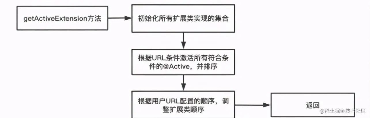 getActiveExtension(URL url, String key, String group)方法获取所有自动激活扩展点。参数分别为URL、URL中指定的多个key(多个逗号隔开)和URL中指定的分组信息(group)。