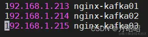 zookeeper.connect=192.168.1.213:2181,192.168.1.214:2181,192.168.1.215:2181(三台Linux的IP)