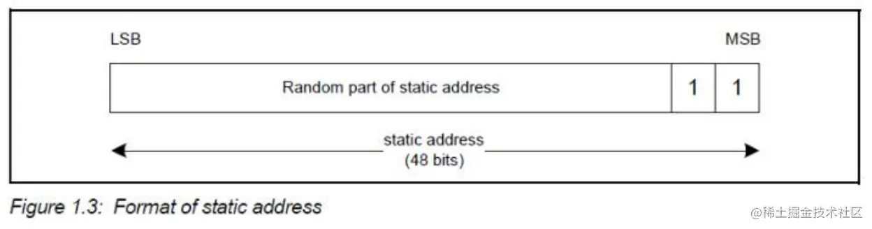 静态设备地址是设备在上电时随机生成的地址,NRF52832 官方工程默认都是使用静态地址,其格式如下: