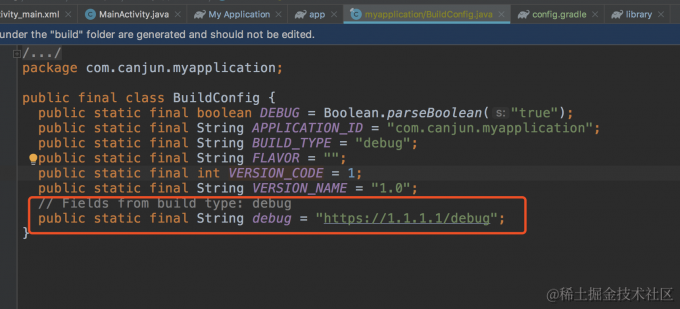 结果:会在主模块(app)目录下的BuildConfig中生成debug字段