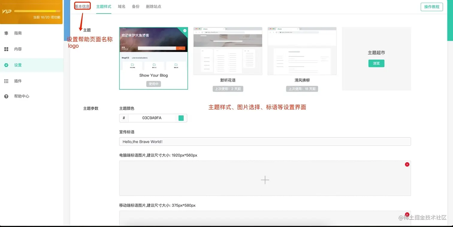 秉承简单好用的原则,操作简单便捷,轻松上手使用,只需要四步,创建一个帮助文档页面,选择适合的主题模板,选择和产品、官网契合的颜色,进行页眉页脚自定义设置(logo、标语、图片等)。