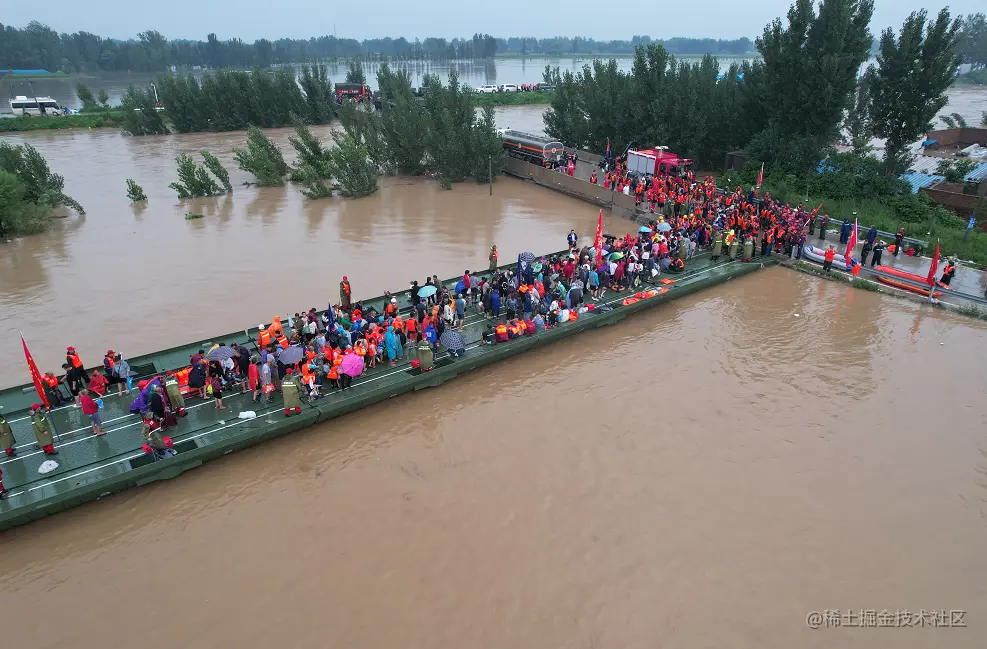2021年7月,河南省新乡市中北部遭受大暴雨、特大暴雨,风雨中架起“生命之舟”,动力舟桥等装备齐上阵,经过近4个小时的持续救援,1400余名被困群众全部成功转移;2022年8月,硬实力与新科技集结,鏖战6天,打赢惊心动魄的辽宁绕阳河溃口封堵战……“人民至上”,每一次极速救援都全力以赴,是承诺更是本色。