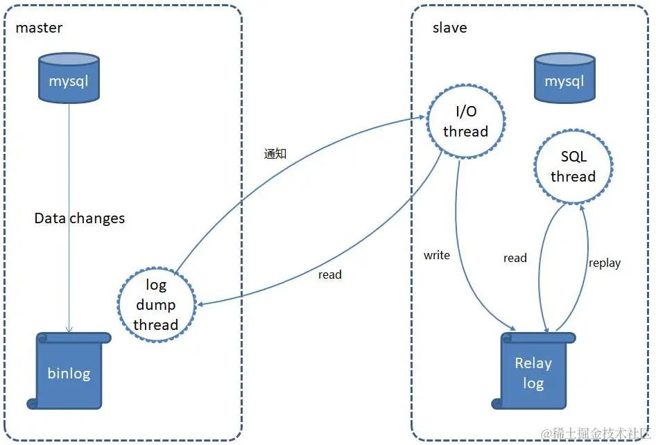既然我们可以模仿Mysql的主从复制来完成我们的需求,那么我们需要先了解一下mysql主从的原理,如下图所示:
