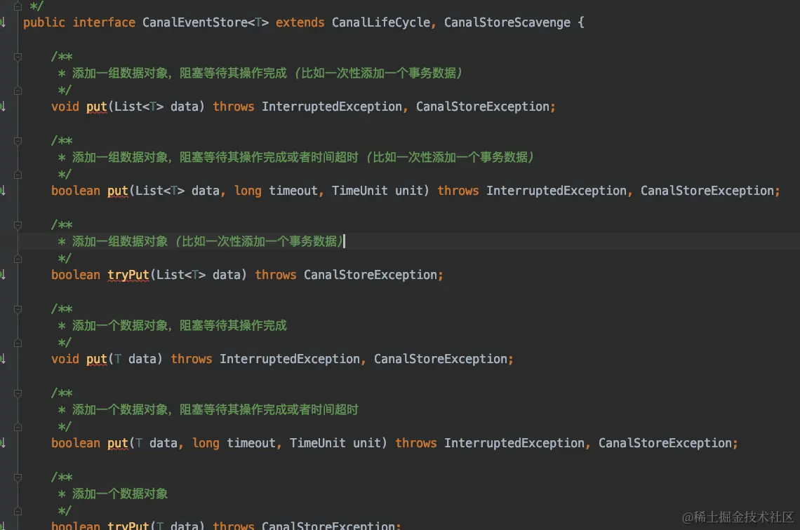 可以看见EventStore其实就是一个简单的存储,在canal中提供了