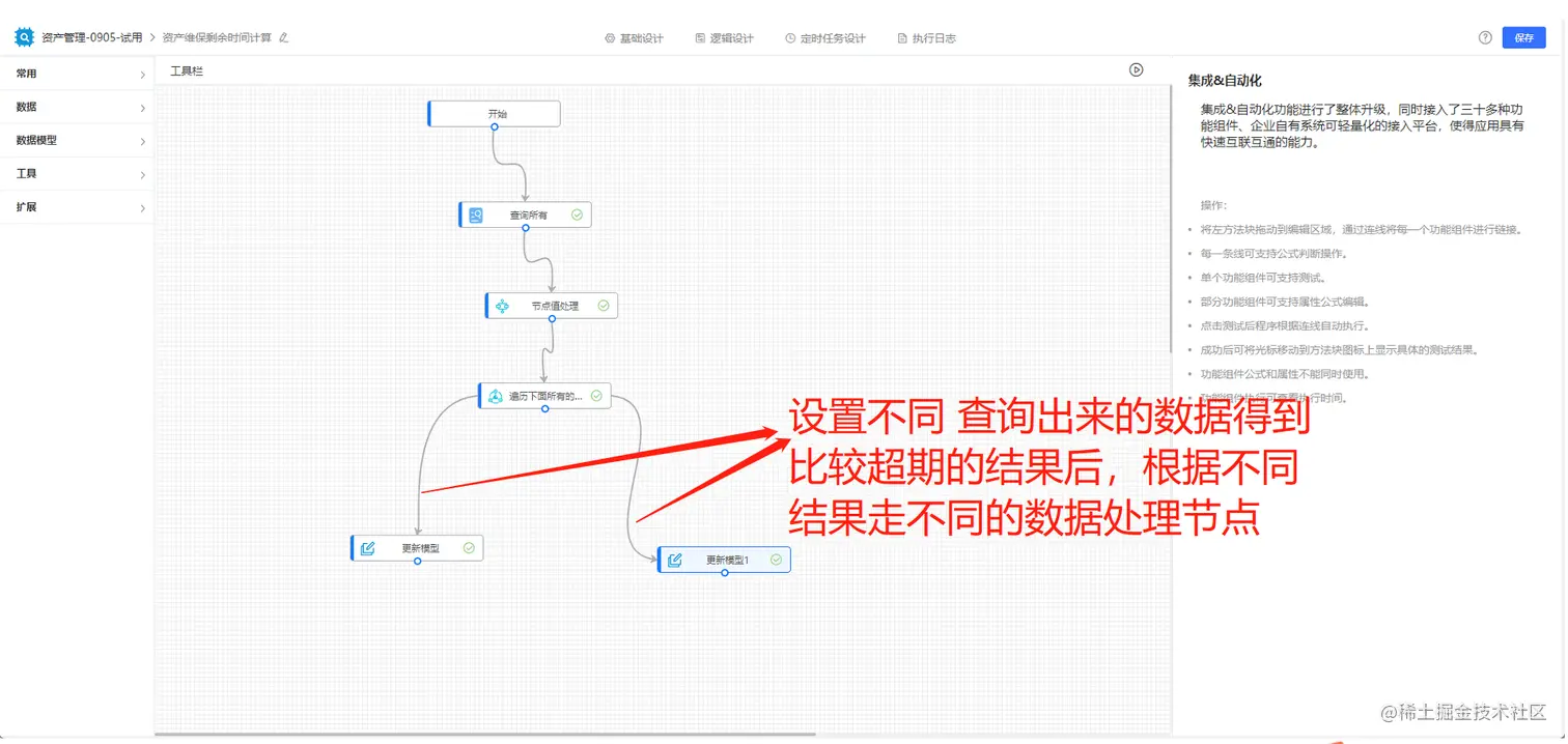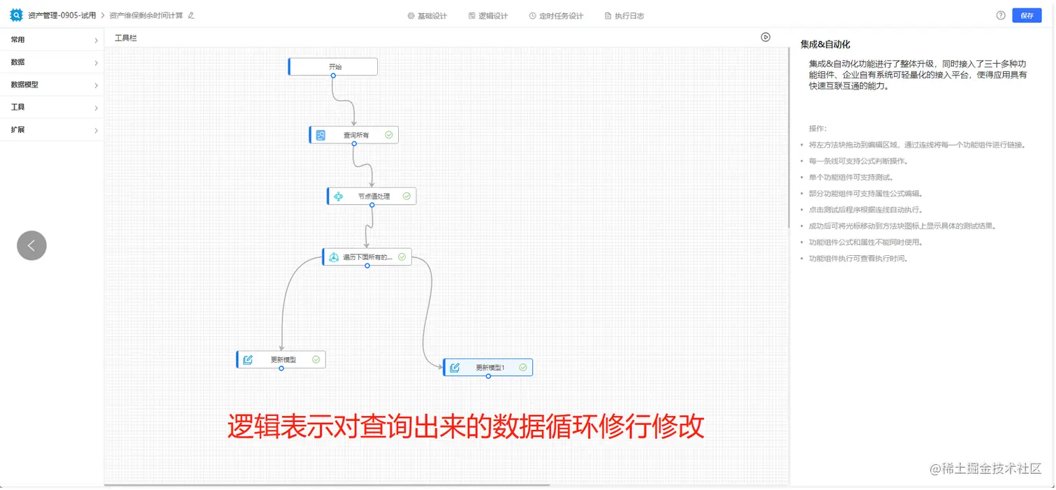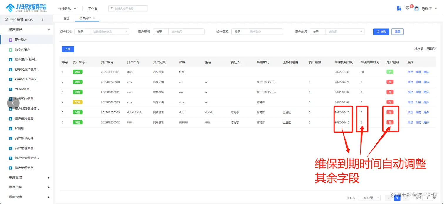 本项目采用低代码配置资产管理的系统,其中包括固定资产、耗材管理、采购、存储、出入库分配调拨等相关应用。这里详细介绍下如何动态实现设备维保自动到期的功能。