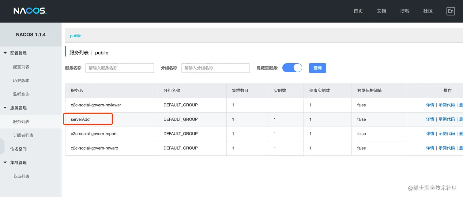 serverAddr = "localhost:8848"