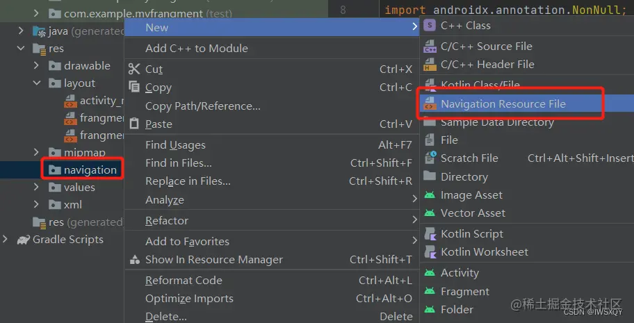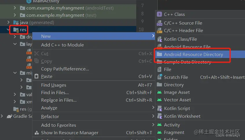 基于上次Frangment切换项目下在res文件夹下新建一个文件夹: