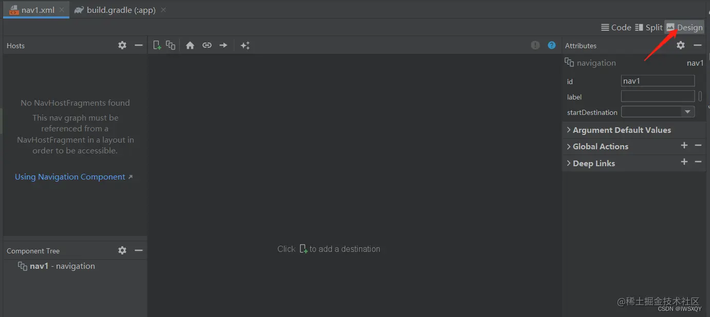 选择新建的nav1,打开design模式:
