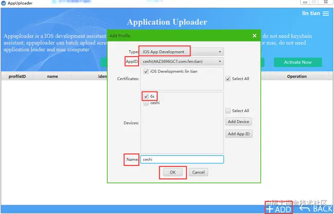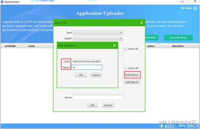 获取到UUID、点击Add Device,复制上去,输入设备名称,点击ok。