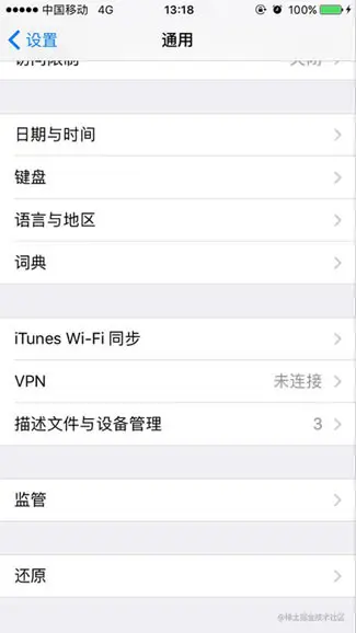 点击设置、进入通用,下拉选择描述文件和设备管理。