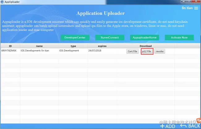4、点击p12 File下载保存.p12 证书文件