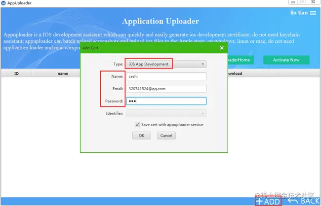 如此就可以登录Appuploader,创建ios测试证书了。