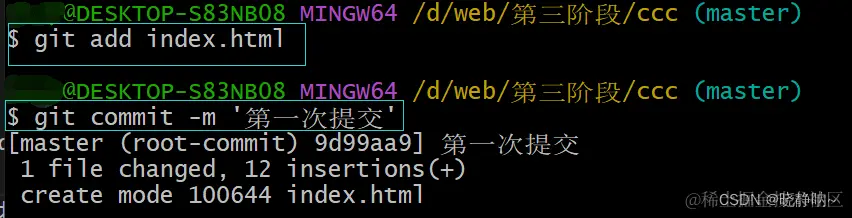 (2)在git上输入 git add '自己新建文件的名字',然后再输入git commit -m '提交信息',