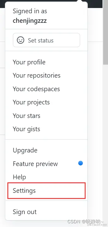 4.打开GuiHub 进入个人主页 ,点击Settings,在点击 SSH and GPG keys 。