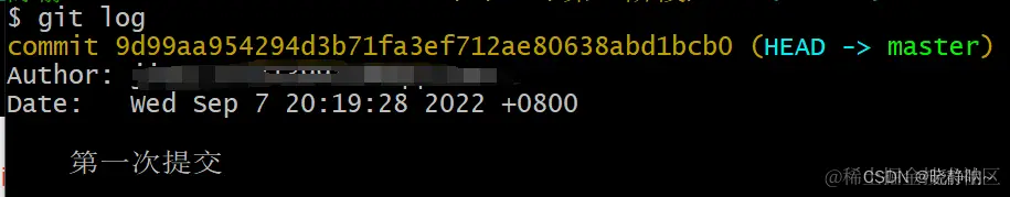 (3)输入 git log 查看效果,结果如下图说明提交成功