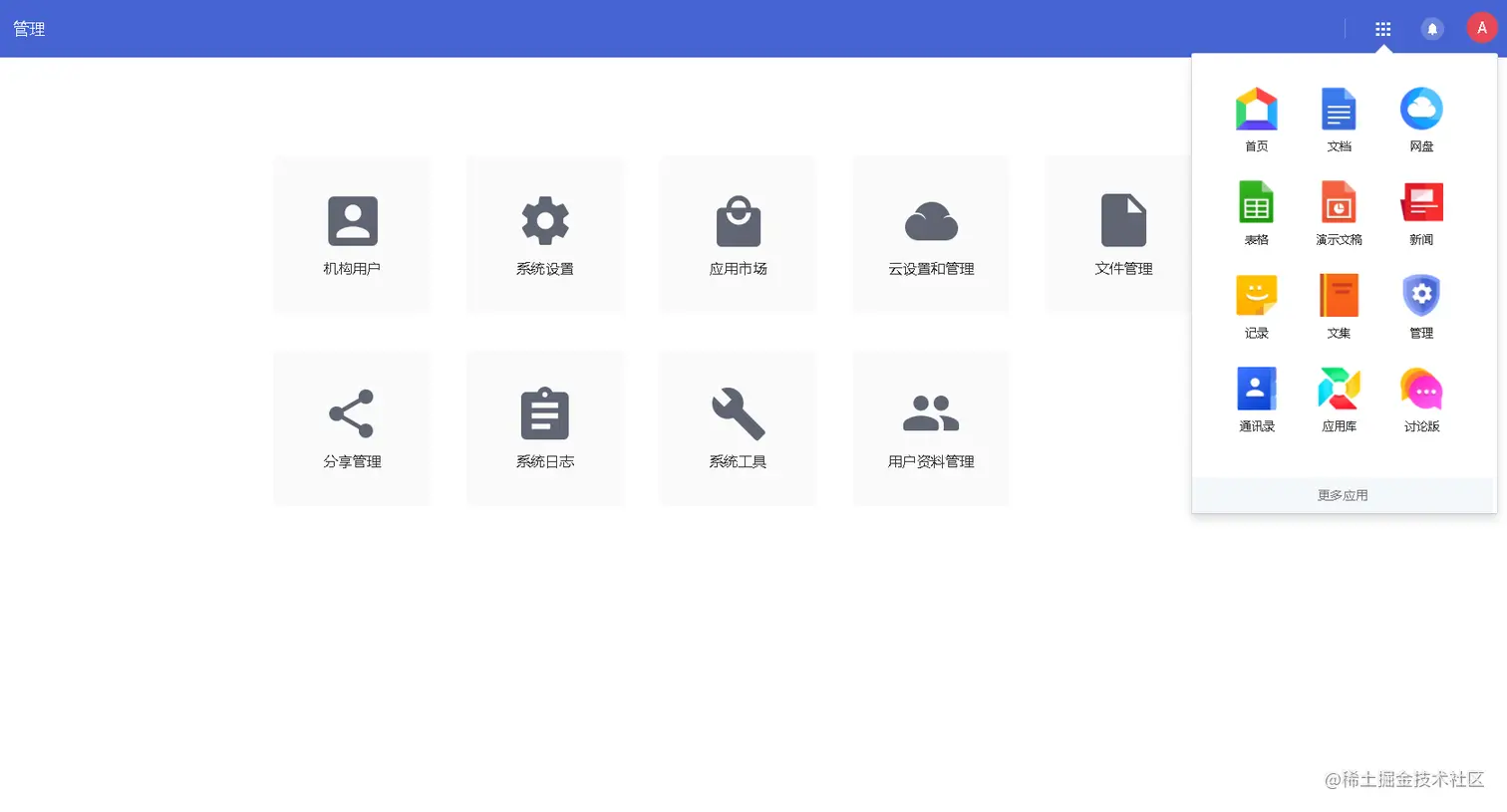 - 文档: 在线 Word 文档协作工具。前端做了一套模板管理,用于企业添加自己的常用文档模板,如空白合同。后端支持 office online server,onlyoffice,collaboraoffice 来实现文档预览与协同编辑。