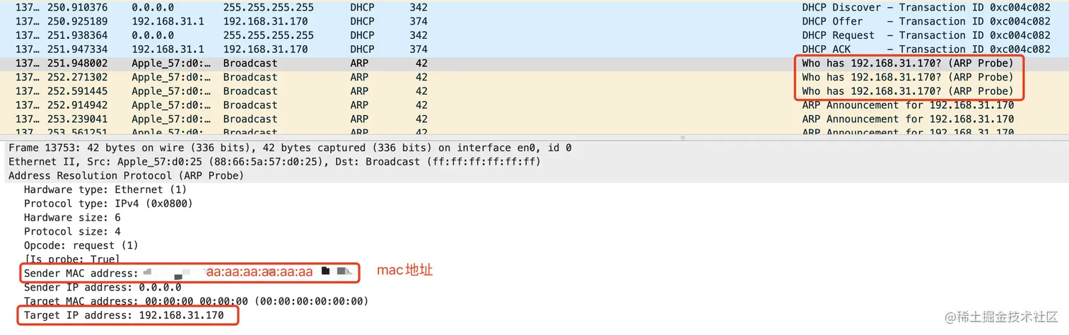 - 另一个就是看下本地网段里有没有其他机子也用了这个IP,如果有冲突的话,那需要重新再走一次DHCP流程。