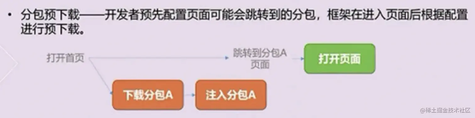 当用户点击到子包的目录时,还是有一个代码包下载的过程,这会感觉到明显的卡顿,所以子包也不建议拆的太大,当然我们可以采用子包预加载技术,并不需要等到用户点击到子包页面后在下载子包