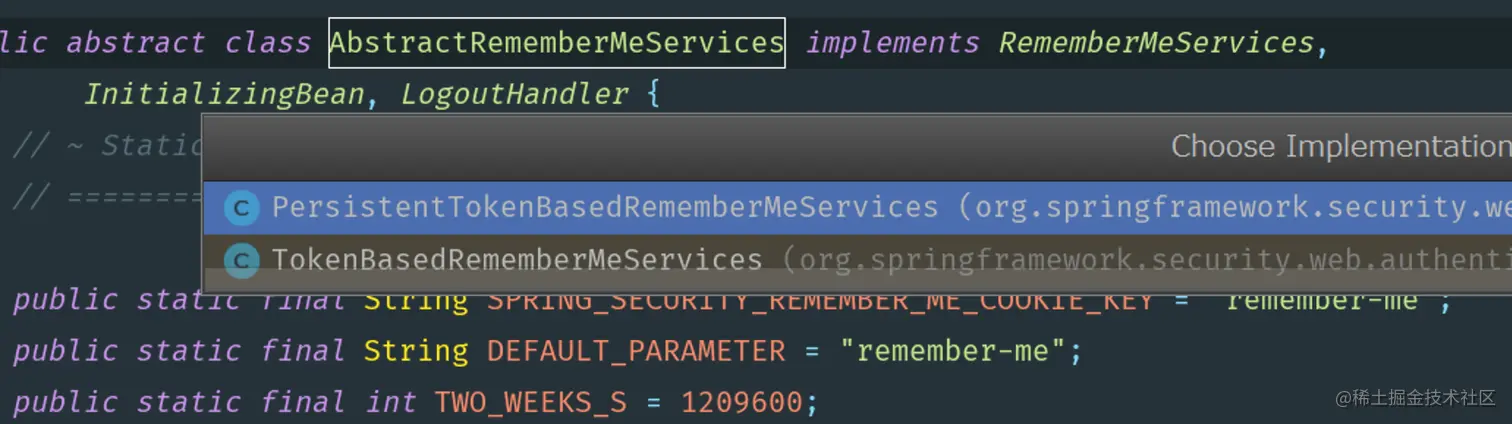 我上面提到的2个实现类,其实都是AbstractRememberMeServices的子类,如下图所示: