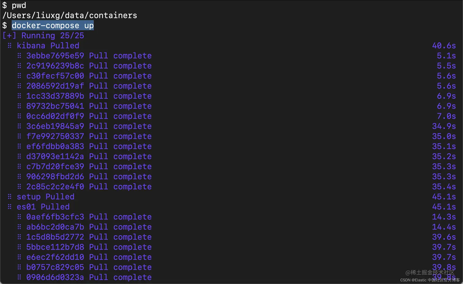 在上面,我们定义 Elasticsearch 集群的密码已经 Elastic Stack 的版本。这个可以根据自己的要求进行修改。docker-compose.yml 的内容如下: