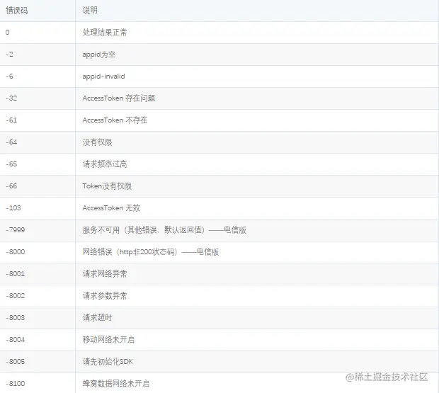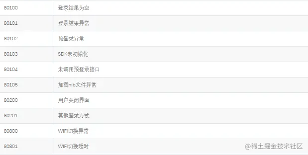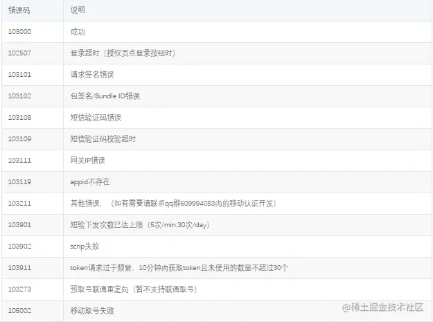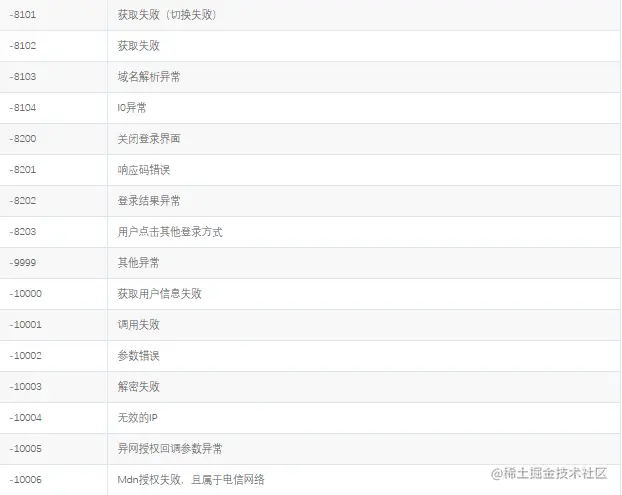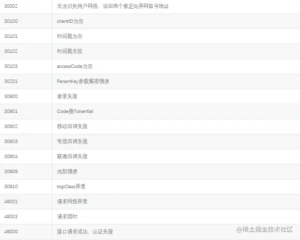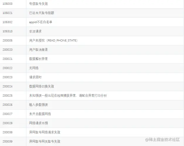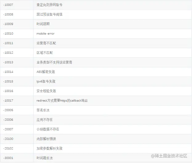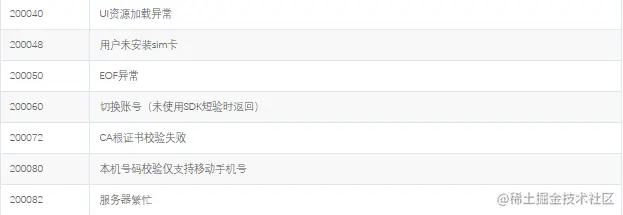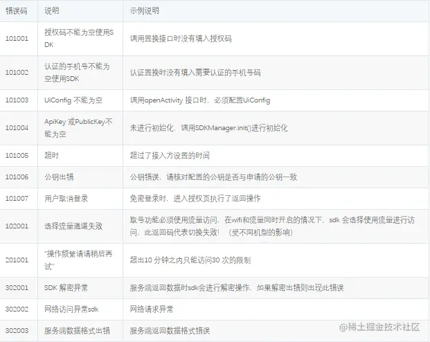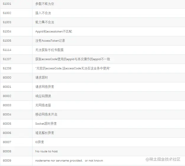 秒验 运营商SDK错误码