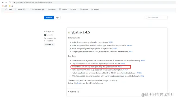 翻阅 MyBatis 官方文档进行求证,发现在 3.4.5 版本发行中 bug fixes 中有这样一句
