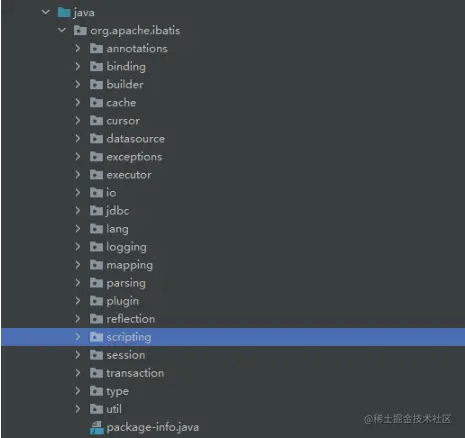 MyBatis 源代码的目录是比较清晰的,基本上每个相同功能的模块都在一起,但是如果直接去阅读源码的话,可能还是有一定的难度,没法理解它的运行过程,本次通过一个简单的查询流程从头到尾跟下来,可以看到 MyBatis 的设计以及处理流程,例如其中用到的设计模式: