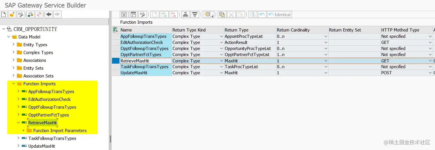如果是用 Gateway Builder 即 SEGW 事物码开发的 OData,首先在 SEGW 项目里创建 Function Import: