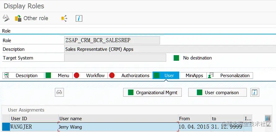 然后是检查 WANGJER 这个用户是否被分配给 这个PFCG role 了?