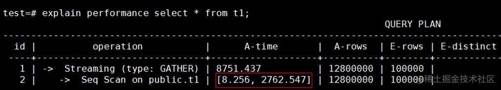 从查询计划中的A-time可以看到最长和最短的执行时间相差很大,说明在不同DN上扫描数据的时间不同。