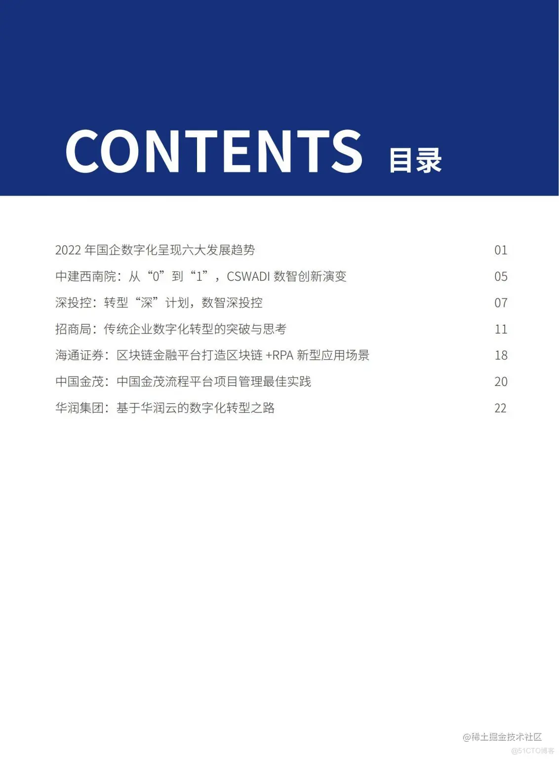案例集从2022年两会《政府工作报告》中提及的国有企业的发展方向出发,重新思考国有企业的数字化趋势将走向何方,并对近百家国有企业展开了深度调研,结合2018年-2021年在“中国数字化转型与创新评选”中获奖的国有企业典型案例研究,总结了2022年国有企业的数字化趋势,帮助国有企业在面对不确定的未来时能找到一些方向。