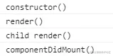 第一次渲染App组件 先执行constructor钩子函数输出constructor() 然后执行render输出render(),渲染过程中遇到Child组件 输出child render()把子组件挂载阶段的钩子函数执行完毕 执行父组件的componentDidMount()