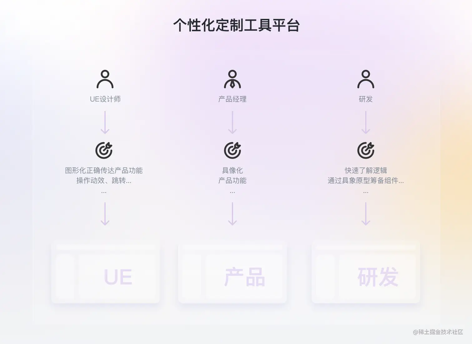 收一收,继续回来我们的主题上来,是否将工具平台做成个性化定制平台并且其中功能都打磨细致,就能解决工具降本增效的问题了?其实不然,问题不能想得太复发,当然也不能想得很简单,都知道用户需求是分阶段而不同的,可能产品经理A不需要设置字号大小颜色,但是产品经理B为了今年绩效决定卷一卷同事,立志要出“高保真原型”,开始设置起了字号大小颜色,此时平台功能又被局限住了