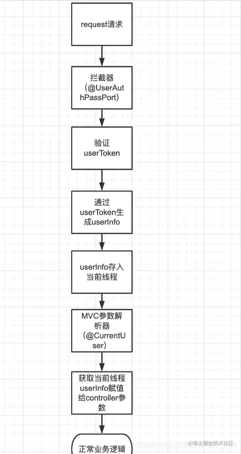 简略的解释一下上边的代码,我们通过拦截器preHandle方法进入Controller方法前method.getAnnotation(UserAuthPassPort.class) != null先获取当前请求方法是否标注我们的自定义验签注解,如果标准的话就进入拦截器,进行验签checkoutToken在验签的时候我们需要通过userToken去获取当前userToken对应的user信息保存在ThreadLocal里以便之后的业务中使用;最后生成视图后也就是方法执行结束后postHandle里清除ThreadLocal里的用户信息,否则会有内存泄漏的可能!切记必须清除!必须清除!必须清除! 重要的事情说三遍,为什么必须清除大家可以看一下ThreadLocal的实现原理这里就不多做赘述了;