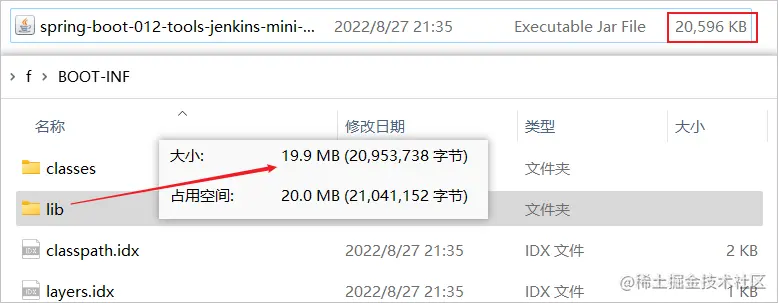 而整个项目通常会被构建成一个Jar,上传到服务器运行;整个Jar包中,三方依赖会被一并打包进去,占用空间最大的,也就是这部分依赖包;