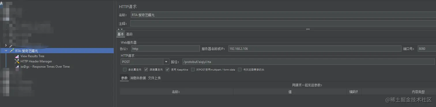 添加HTTP Header Manager,配置请求头:application/x-protobuf