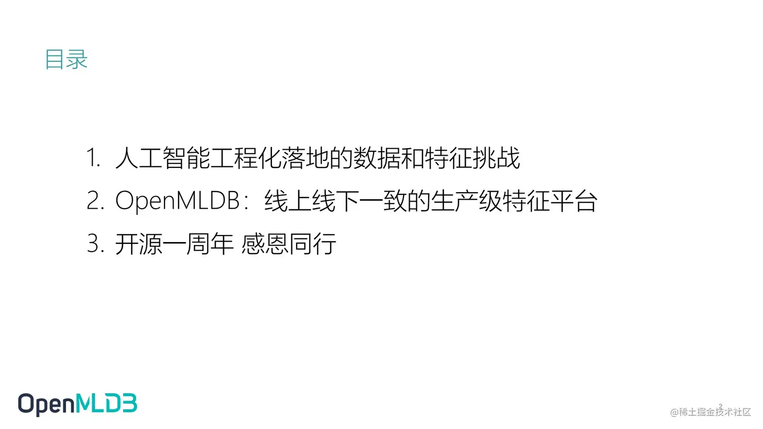 - 第三部分带领大家回顾 OpenMLDB 的发展历程,以及 OpenMLDB 下一版本的 Roadmap。