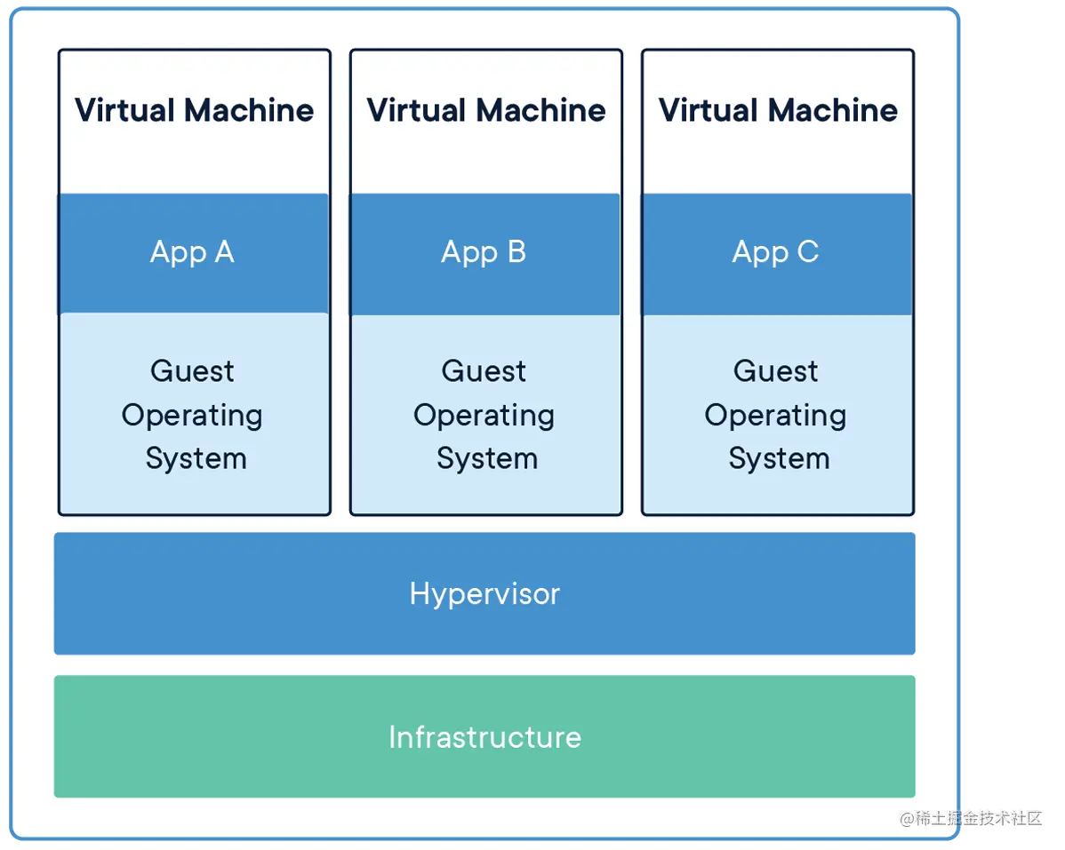小弟不才,说说自己的见解,看图就很容易看出docker和虚拟机的最大区别,说人话就是,首先要说出docker里的容器和镜像的概念,容器就是根据你需要的镜像启动的,比如你有一个centos系统镜像,传统的虚拟机就是每个虚拟机上都用这个镜像往里面装一次,而docker就用这个镜像启动就可以了,这就生成了一个容器,而容器之间是独立的,这样就能做到资源的复用,扯远了。